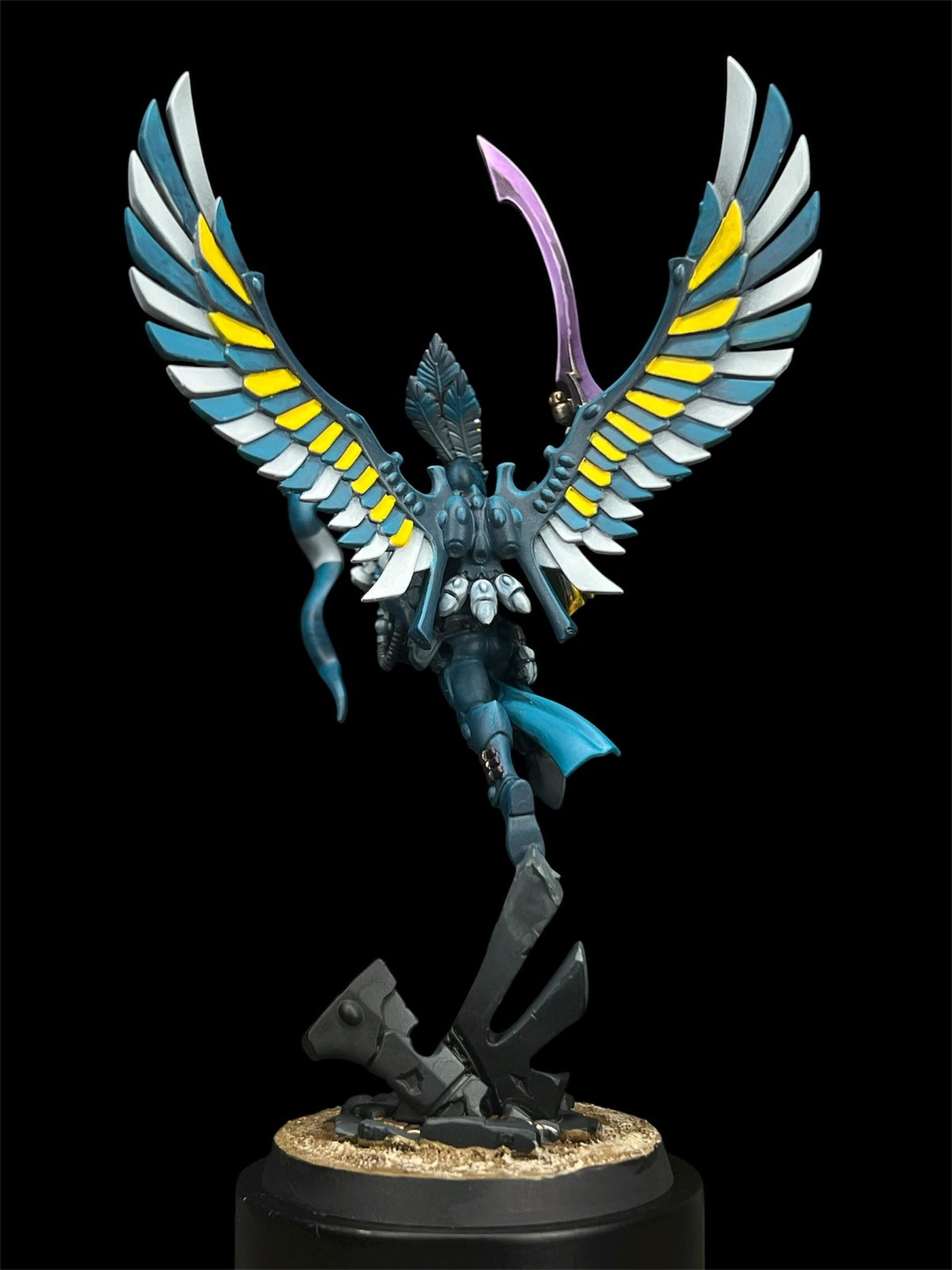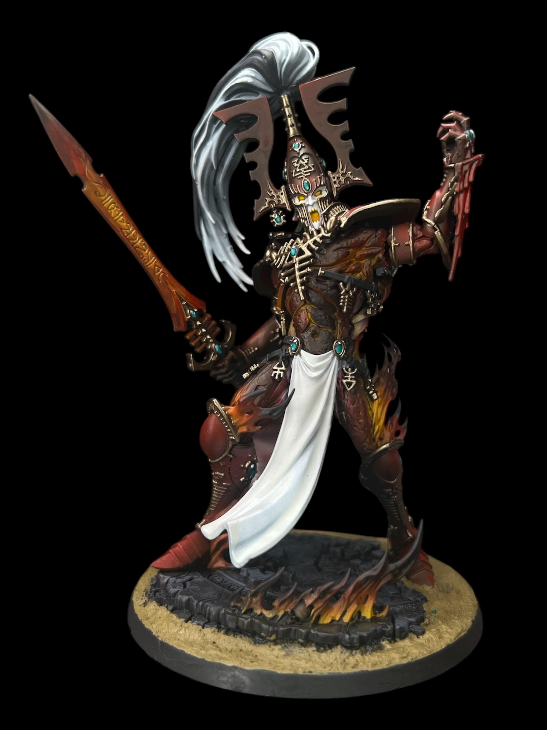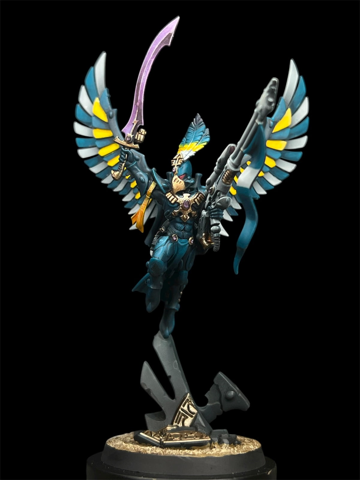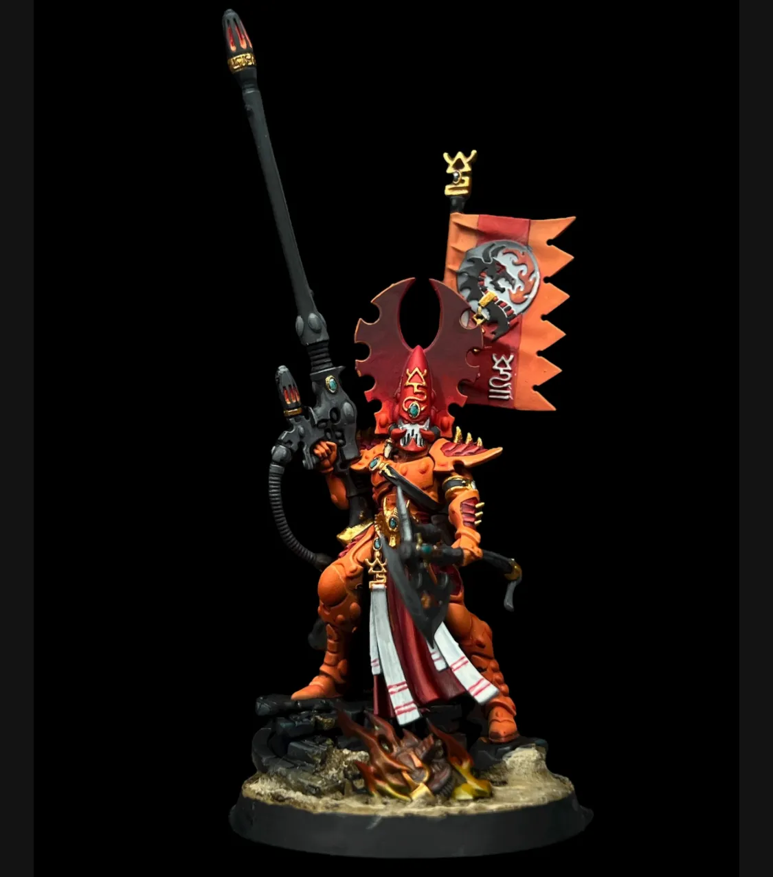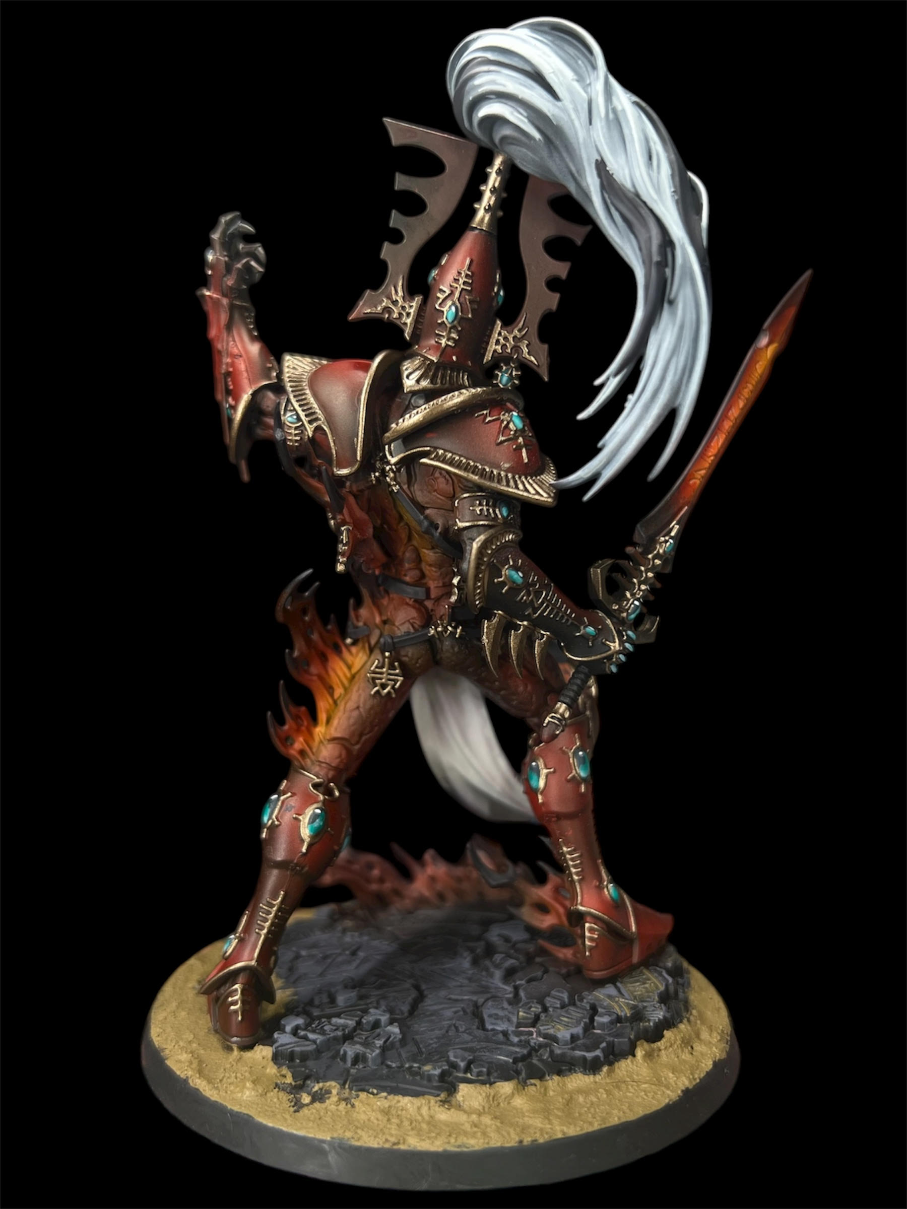 After completing a large-scale commission that marked the beginning of this Ulthwé Aeldari army, we were honored to continue the journey with a second order focused on legendary characters: Baharroth, Fuegan, and the Avatar of Khaine. These weren’t just additions to the collection — they were centerpieces. The customer requested a lore-accurate, box art–inspired finish to ensure the models felt authentic to the Warhammer universe while standing proudly alongside their existing force. Each character was approached with precision, honoring official color palettes, spirit stones, armor details, and iconography while delivering the crisp, high-contrast presentation that defines classic box art. The result captures the unmistakable presence of the Phoenix Lords and the molten fury of Khaine himself. Together, these icons elevate the army from a strong foundation to a legendary host: a true embodiment of Ulthwé’s disciplined, fate-bound warriors.